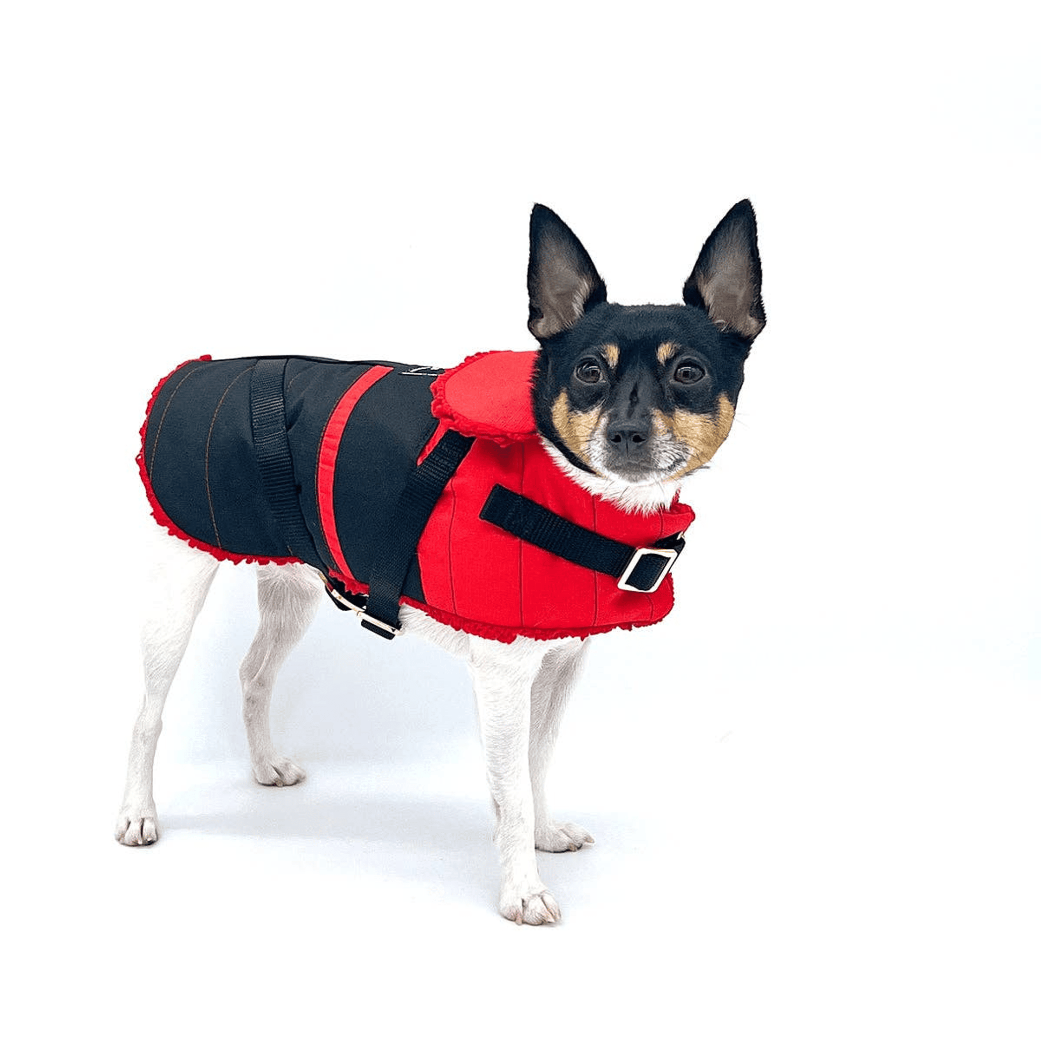 Handcrafted with extra durable Ottertex polyester ripstop fabric, our equestrian coat is a clear winner. Designed to keep moisture and cold out, your dog stays warm and dry even on those grey, slushy days. Adjustable velcro straps at chest and girth are reinforced with brass plated, criss-cross surcingle closures for extra security and style. With a D-ring at the back, simply clip on any leash - no additional walkwear needed. Comes in XS, S, and M. Ask us about having this piece made to order in larger sizes.