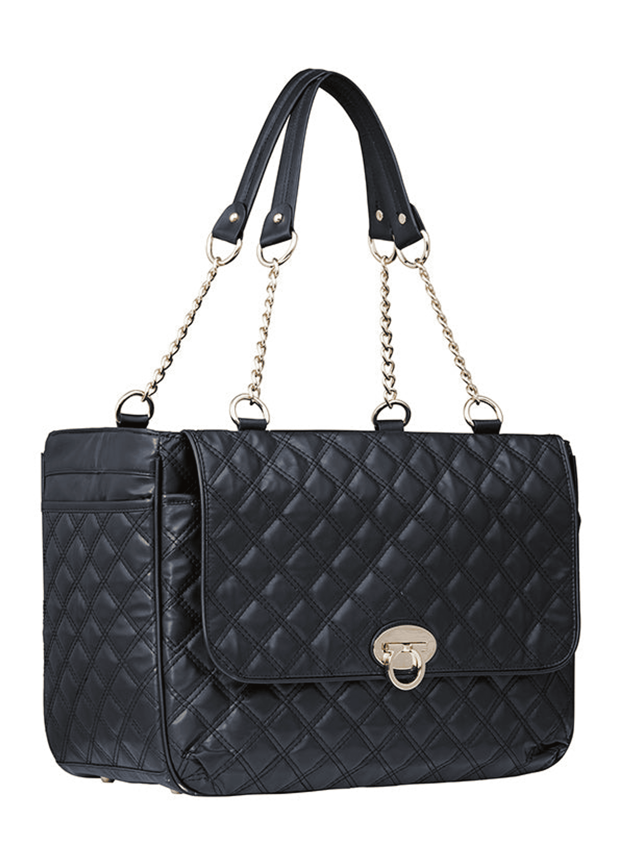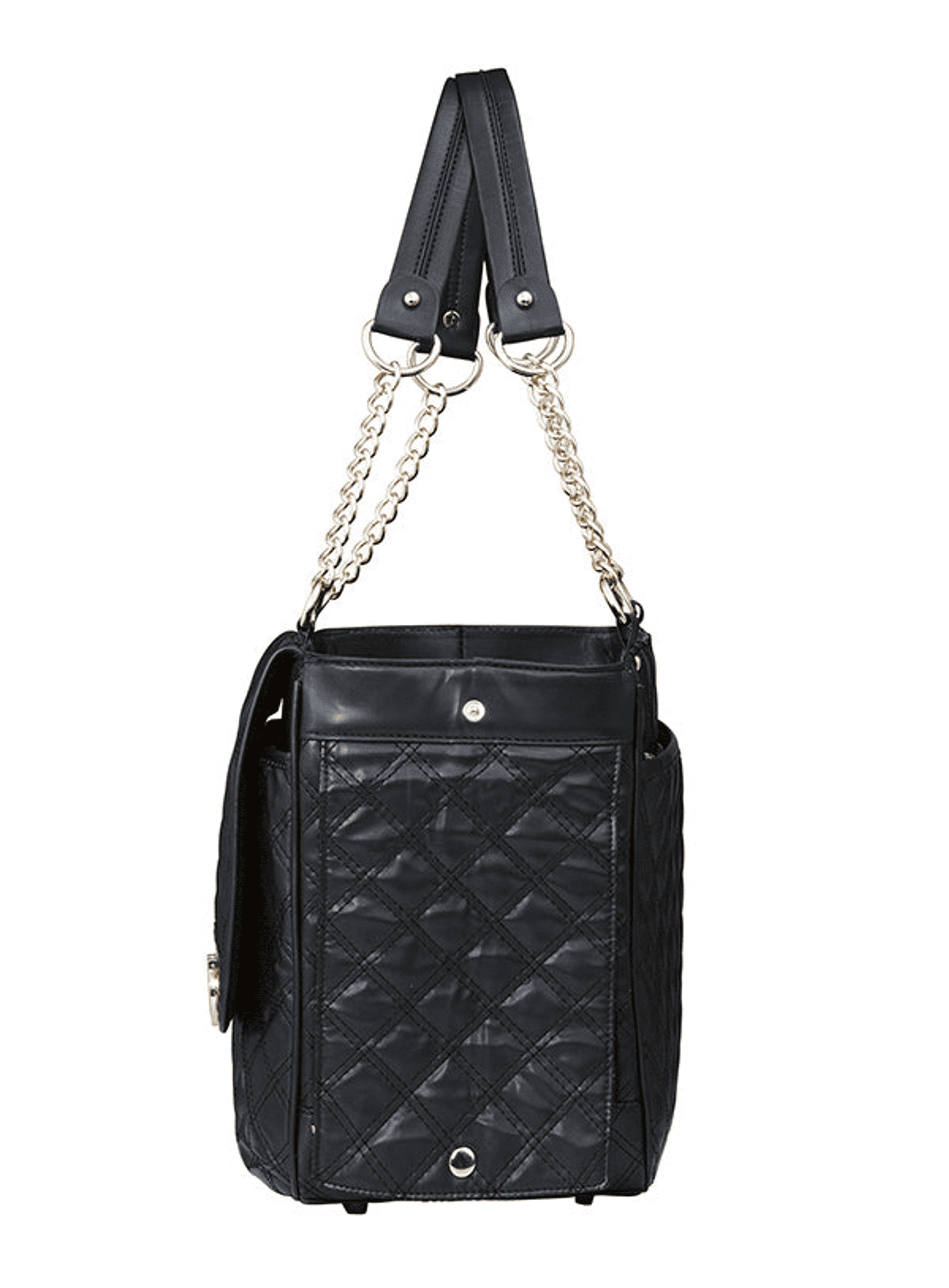DescriptionA pet carrier and fashion statement all rolled into one! Our Coco Pet Carrier is specially designed to help you look fabulous and make your pet's journey as comfortable and as safe as possible. It has a beautiful quilted outer with a mesh window at one end and another across the top of the bag. This provides ventilation and makes it possible for your pet to take in the view during your outing. It also has a mesh top panel with dual zipper tabs that make it easy to open and close. It features chain link handles with matching trim with a matching interior which is lined with a removable quilted easy clean material and includes a leash clasp for extra safety Open the front clasp and a large pocket will be revealed that is perfect for carrying either your dog's bits and pieces, or your own come to that! Can be carried over the shoulder or by hand.