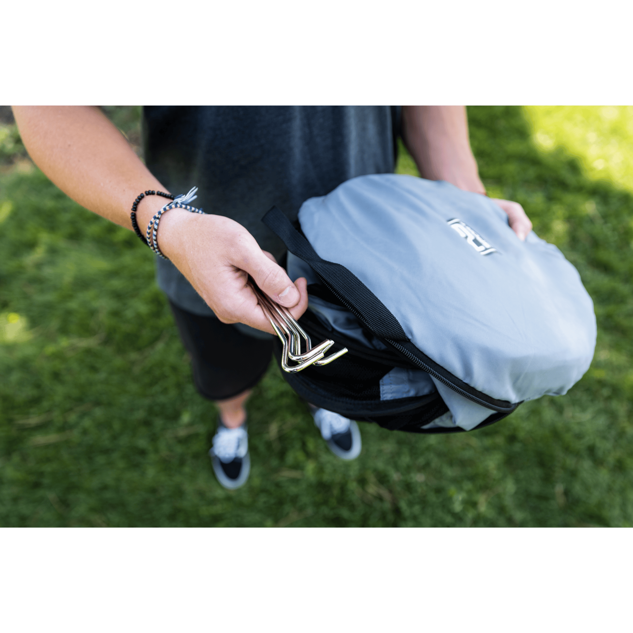 The newly redesigned K9 Kennel Pop-Up Tent is perfect for outdoor adventures and travel! It pops-up and down in seconds and can fit easily into any backpack or suitcase. Now included with 4 aluminum stakes to secure into the ground! From the beach, the mountains, or the house, this tent provides your pup a place to rest. This tent provides the comfort of a kennel, without the hassle of being big, bulky, and heavy.