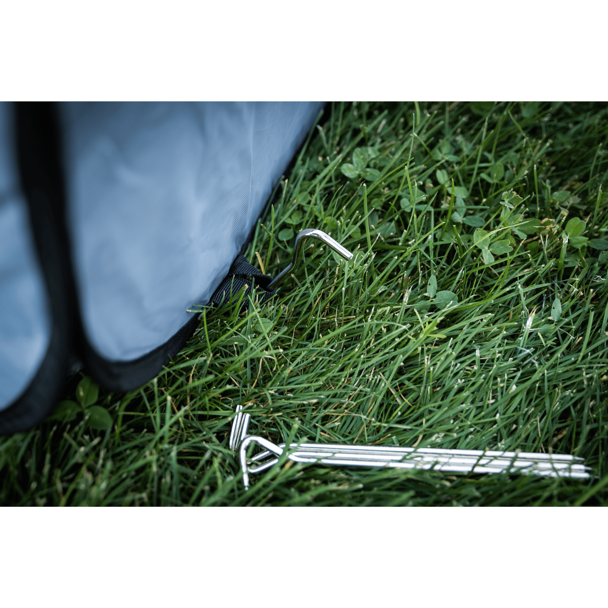 • 4 aluminum stakes & fabric loops to secure your kennel in place
