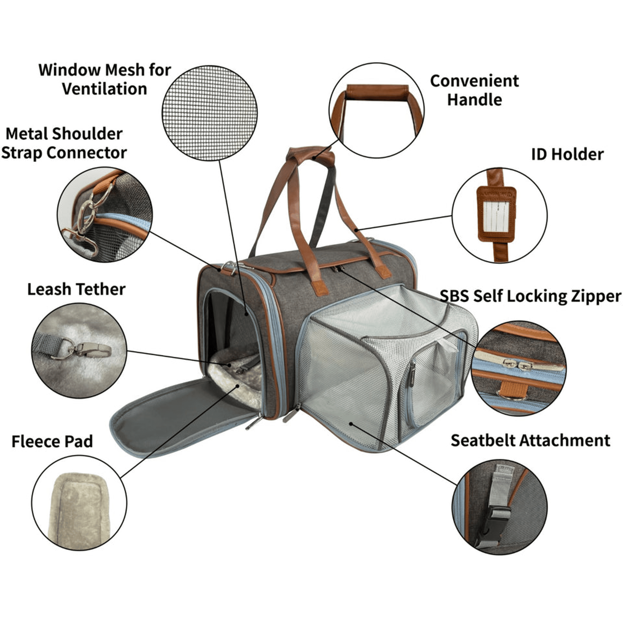 • Premium Brand Auto Self Locking Zippers for Safety and Eliminating the need for fragile clasps as the tote cannot be pushed open by your pet from the inside
